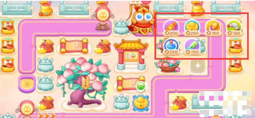 4、之后在中间放置烟花防空,把左侧的道具打开放置上元宝。