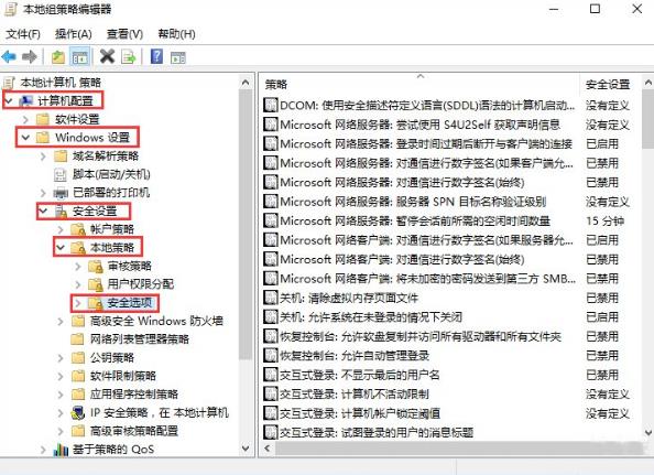 在本地组策略编辑器中依次点击计算机配置——widnows设置——安全设置——本地策略——安全策略。