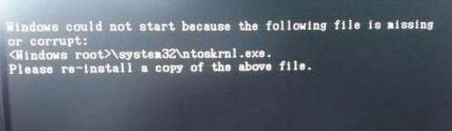 故障提示:Windows could not start because the following file is missing or corrupt:/system32/ntoskrnl.exe. Please reinstall a copy of the above file.