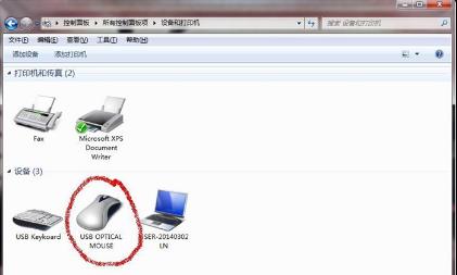 1.打开控制面板,在所有控制面板项中点击设备和打印机,然后找到鼠标设备并打开它的属性窗口。
