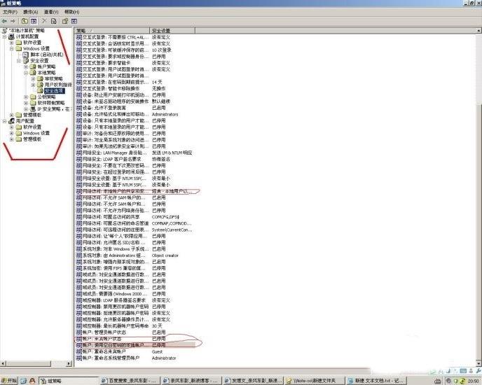 第二步:把“计算机配置-Windows设置-安全设置-本地策略-安全选项”下的一些设置成如图所示的红色标记。