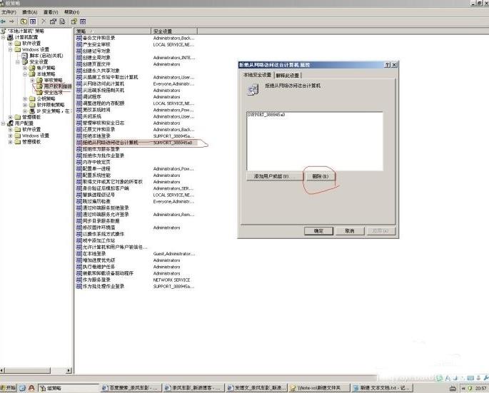 ①把“拒绝从网络访问这台计算机”中的”“Guest”用户删掉