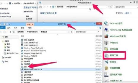 首先我们可以打开控制面板,切换成大图标显示,点击管理工具——服务。