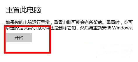 找到重置此电脑的选项,点击开始。