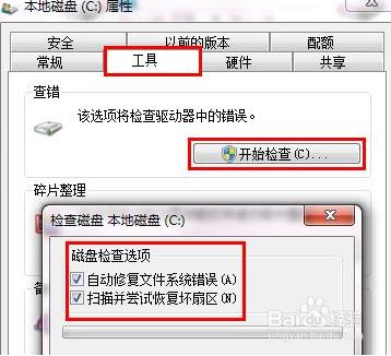 对于这样的问题,我们首先可以使用系统自带的磁盘修复工具来进行修复,右键点击磁盘,打开属性,点击工具,点击查错选项中的开始检查,勾选检查磁盘中的两个选项,点击开始即可。