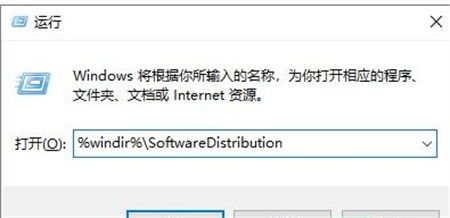 3、按下【Windows+R】打开运行,输入: %windir%\SoftwareDistribution 点击确定,删除Download和DataStore文件夹中的所有文件。