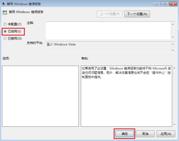 把禁用windows错误报告设置为已启用。