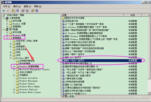依次点击用户配置——管理模版——windows组件——windows资源管理器。
