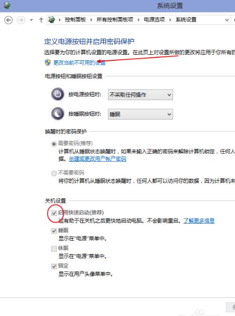 进入选择电源按钮的功能窗口后,点击更改当前不可用的设置,勾选快速启动功能即可,现在大家知道大地win10系统下怎样加快开机速度了吗?
