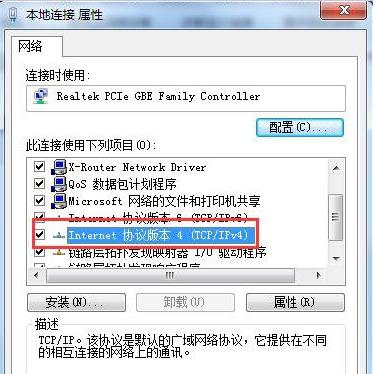 4、在打开的“本地连接 属性”窗口中找到“Internet协议版本(TCP/IPv4)”,双击打开。