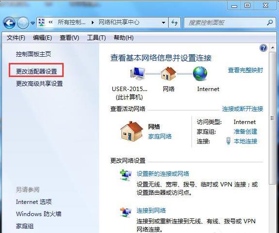 2、在打开的窗口中点击“更改适配器设置”。