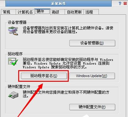 完成上述设置后,我们关闭ie浏览器,右键点击我的电脑,打开系统属性,点击硬件——驱动程序签名。
