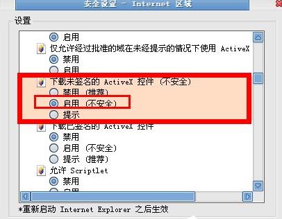 找到下载未签名的activex空间,选择启用。