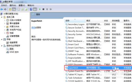 在计算机管理中继续点击服务,找到名为Superfetch的服务,双击打开。