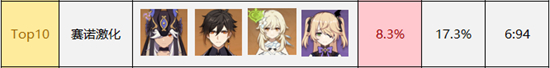 很多玩家也在关心须弥的新体系什么时候才能崛起。其实到了3.1版本,雷草激化队伍已经初见端倪,其中“赛诺激化”和“提八万钟”这两支队伍已经成为使用率Top10和Top13的队伍,说明已经有不少玩家开始尝试新体系了。