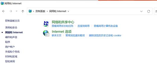 3、在打开的网络和互联网选项界面中找到并单击互联网选项按钮。