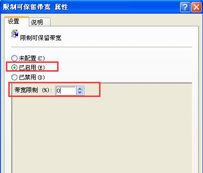设置为已启用,并设置带宽限制为0,这样就可以解除网络限速了。
