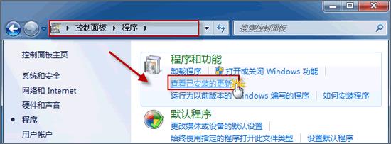 1.首先打开控制面板下的程序选项,在“查看已安装更新”的列表中找到对应的项目进行卸载,如图所示: