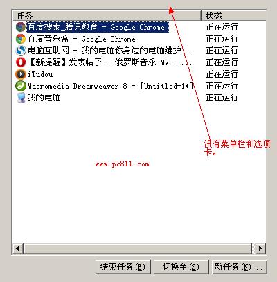 如下图所示,只有一个简单的窗口,任务管理器中没有任何选项卡,及菜单栏。