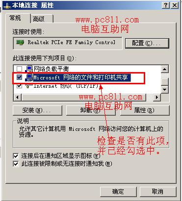 第5步:大概等几秒左右,就回到本地连接属性窗口界面,这时我们就可以看到“Microsoft网络的文件和打印机共享”已经有了,并已经勾选中了,这时我们单击确定按扭即可。