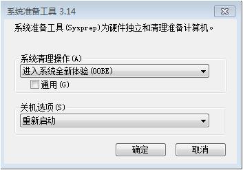 3、系统清理操作点击“进入系统全新体验(OOBE)”,勾选“通用”,点击“关机选项”为“重新启动”,点击“确定”,等待系统恢复出厂设置就可以啦。