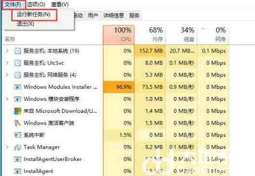 2、在打开的任务管理器窗口中,依次点击“文件/运行新任务”菜单项;