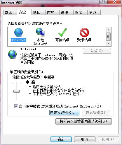 在自定义级别中把自定义设置重置为中,点击确定,这样就可以解决activex控件无法安装的问题了。