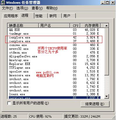 其实这个问题,本站以前已经写过类似的文章,大家可以参考一下。IE进程CPU使用率过高接近100%解决方法