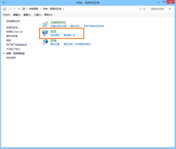首先我们通过开始菜单打开控制面板,点击时钟、语言和区域。
