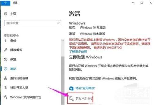 3、使用鼠标单击左侧的激活选项,然后单击右侧的更改产品密钥选项以进入下一步。