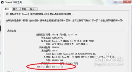 安装完毕后,我们可以在运行中输入dxdiag打开directx诊断工具来核实一下directx版本,现在大家知道大地win7系统下dx11怎么安装了吗?