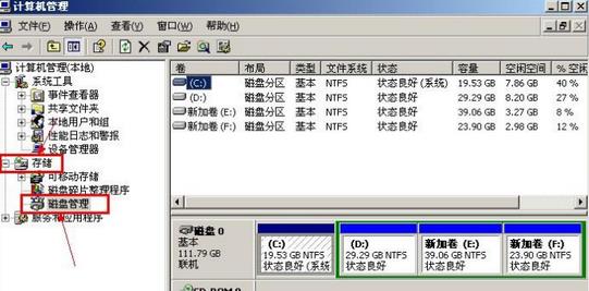 依次点击存储——磁盘管理,然后为们便能够看到磁盘的情况了。