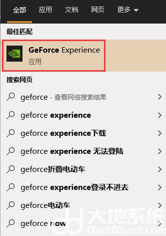 1、首先我们在搜索框中输入【Geforce Experienc】将其打开。