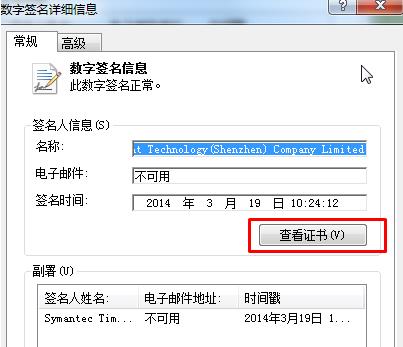 在数字签名标签中点击详细信息。
