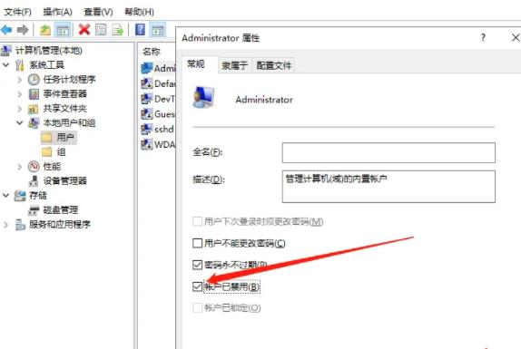 4、取消勾选最后在弹出窗口中,取消勾选帐户已禁用,并点击应用和确定即可。