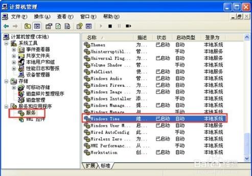 还有一种问题就是windows time服务没有开启导致的,在计算机管理窗口中打开服务,找到windows time,重新开启即可。