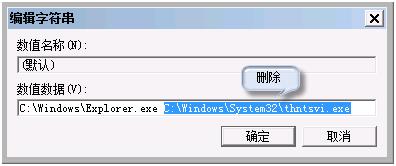 处理时,只要把上面的注册表项最后的“C:\Windows\system32\tlntsvi.exe”部分删除即可。