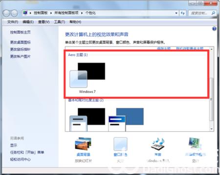 2,在个性化窗口中下拉找到并选用Aero主题即可。
