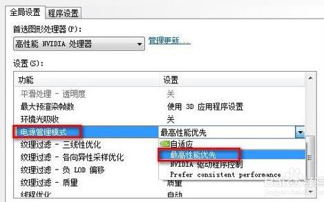 设置电源管理模式为最高性能优先,通过以上的优化设置就可以了,现在大家怎么提高显卡性能了吗?