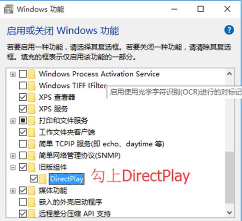 在启用或关闭windows功能中勾上旧版组件中的DirectPlay,然后就不会出现0xc0000022的错误了,赶紧去试试看吧。