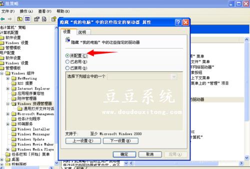 把这个选项设置为未配置就可以解决win7笔记本电脑不显示u盘的故障了。