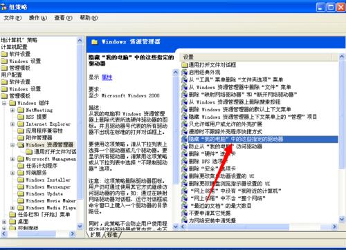 在组策略编辑器中依次点击用户配置——管理模版——widnows组件——windows资源管理器。