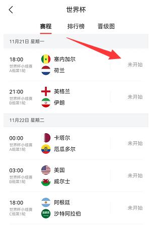 3、进入赛程表以后在每场比赛右侧都有点击观看直播的按钮。(目前还没开始所以暂无播放按钮)