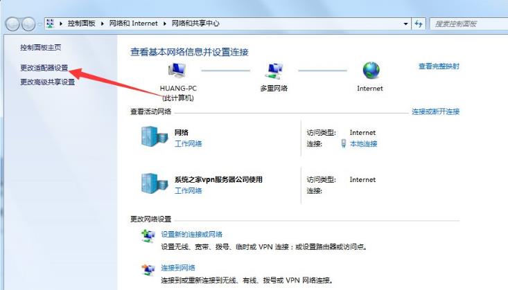 在这个网络和共享中心里继续点击左侧更改适配器设置。