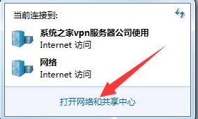 首先我么你点击右下角任务栏处的网络图标,打开网络和共享中心。