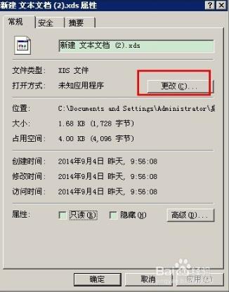 弹出文件的属性窗口后,点击打开方式栏目中的更改。