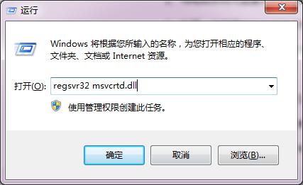 然后打开运行窗口,执行命令regsvr32 msvcrtd.dll。