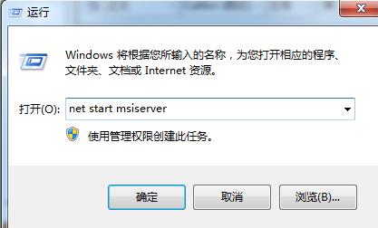方法二:按Win+R打开运行,直接执行命令net start msiserver即可。