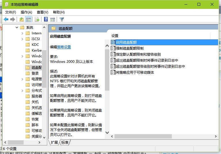 依次点击计算机配置——管理模版——系统——磁盘配额,找到启用磁盘配额选项。