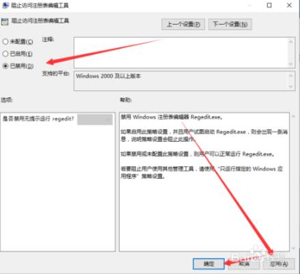 在弹出来的窗口中设置为已禁用就可以解决深度win10提示注册表被管理员禁用的问题了。
